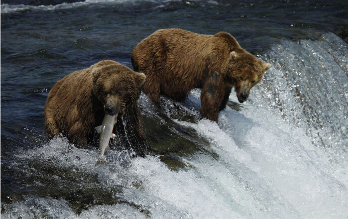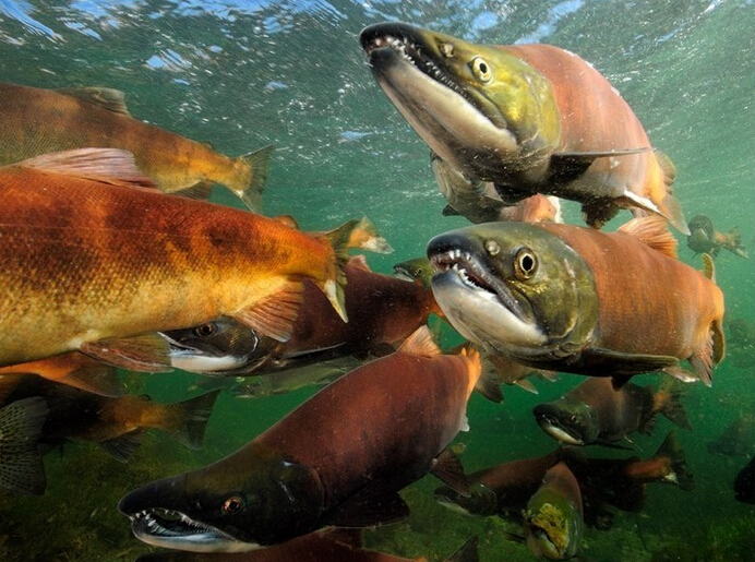 每年产卵季节,鲑鱼都要千方百计地从海洋洄游到位于陆地上的出生地——那条陆地上的河流。央视动物世界曾经播放了鲑鱼的回家之路,极其惨烈和悲壮。